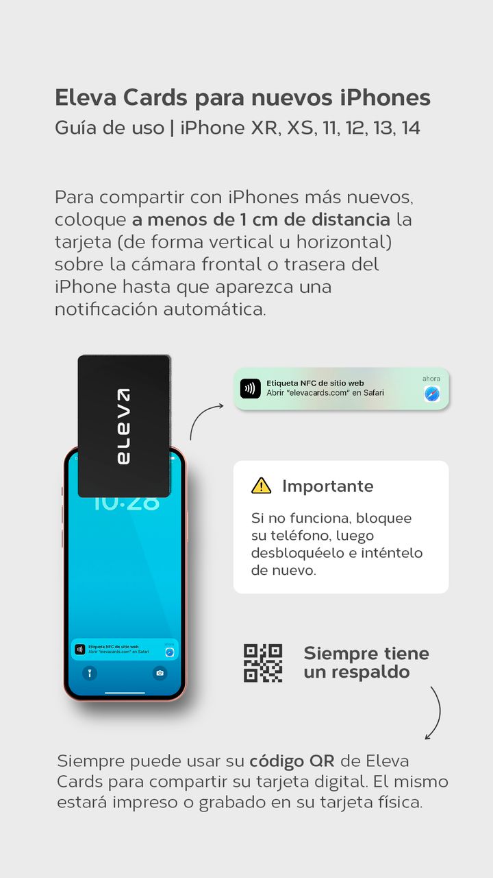 Para los teléfonos más antiguos al 2016 que no aceptan esta tecnología, hay un código QR en la parte posterior de la tarjeta para poder escanear la información.
